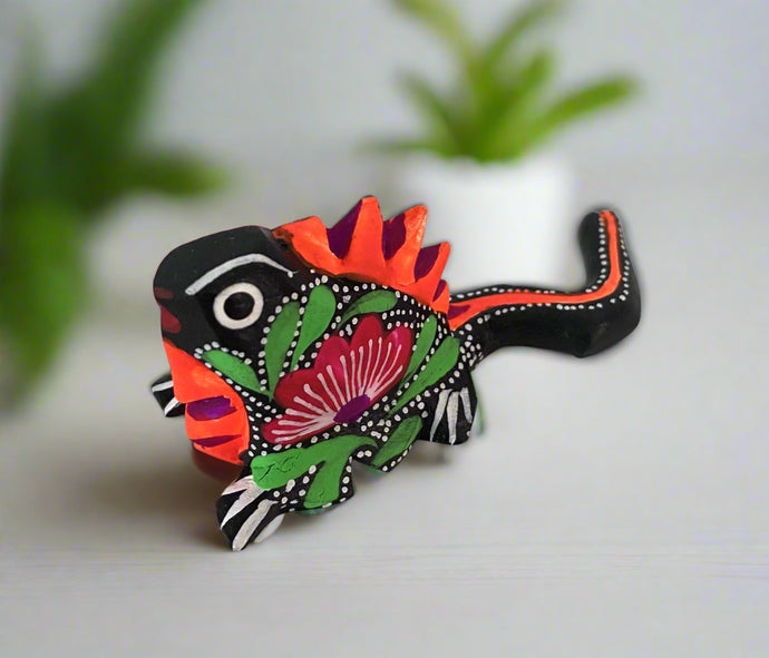 Hand-Made Beautiful Iguana Mini Alebrije Figurine in Bright Colors