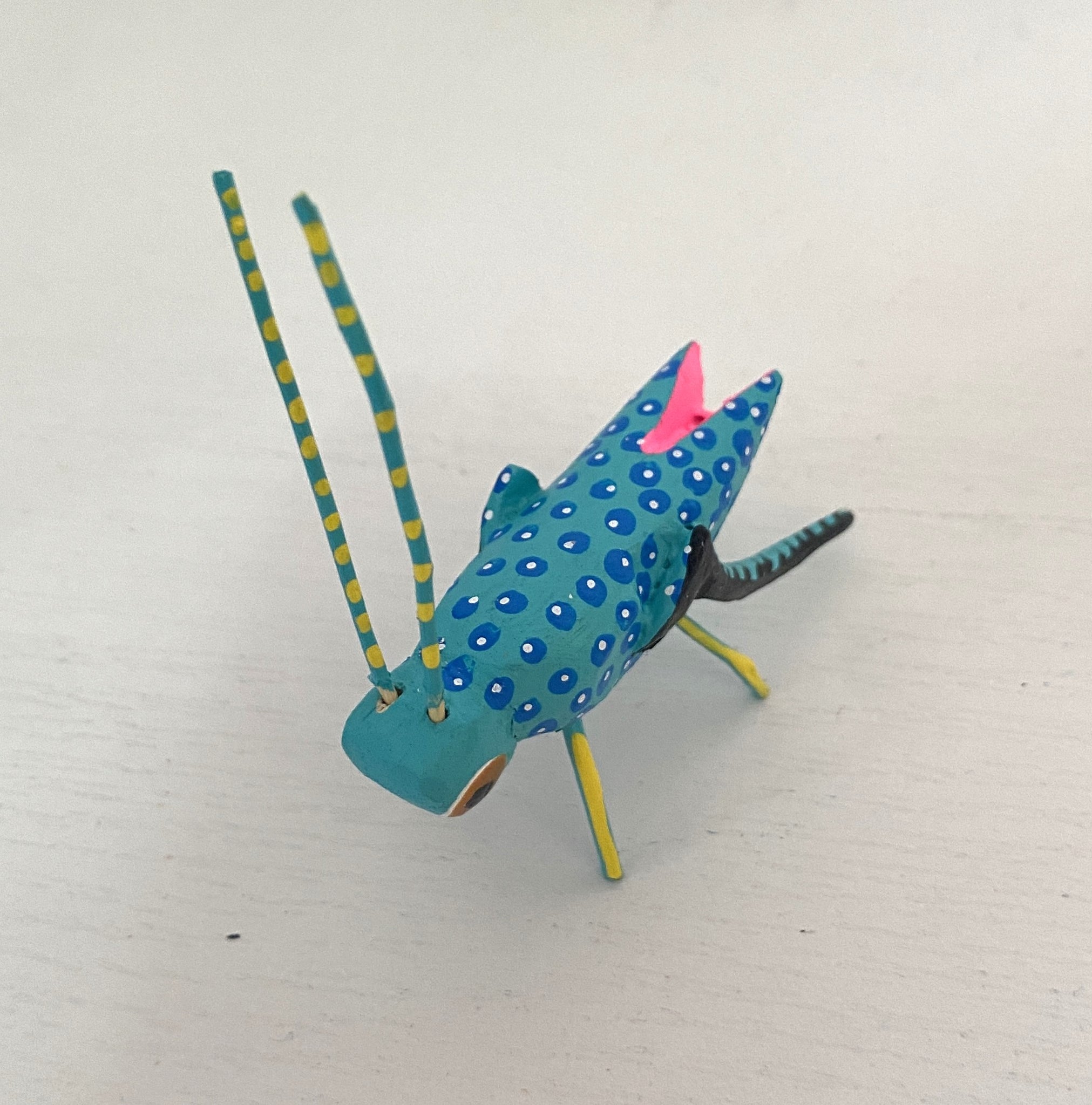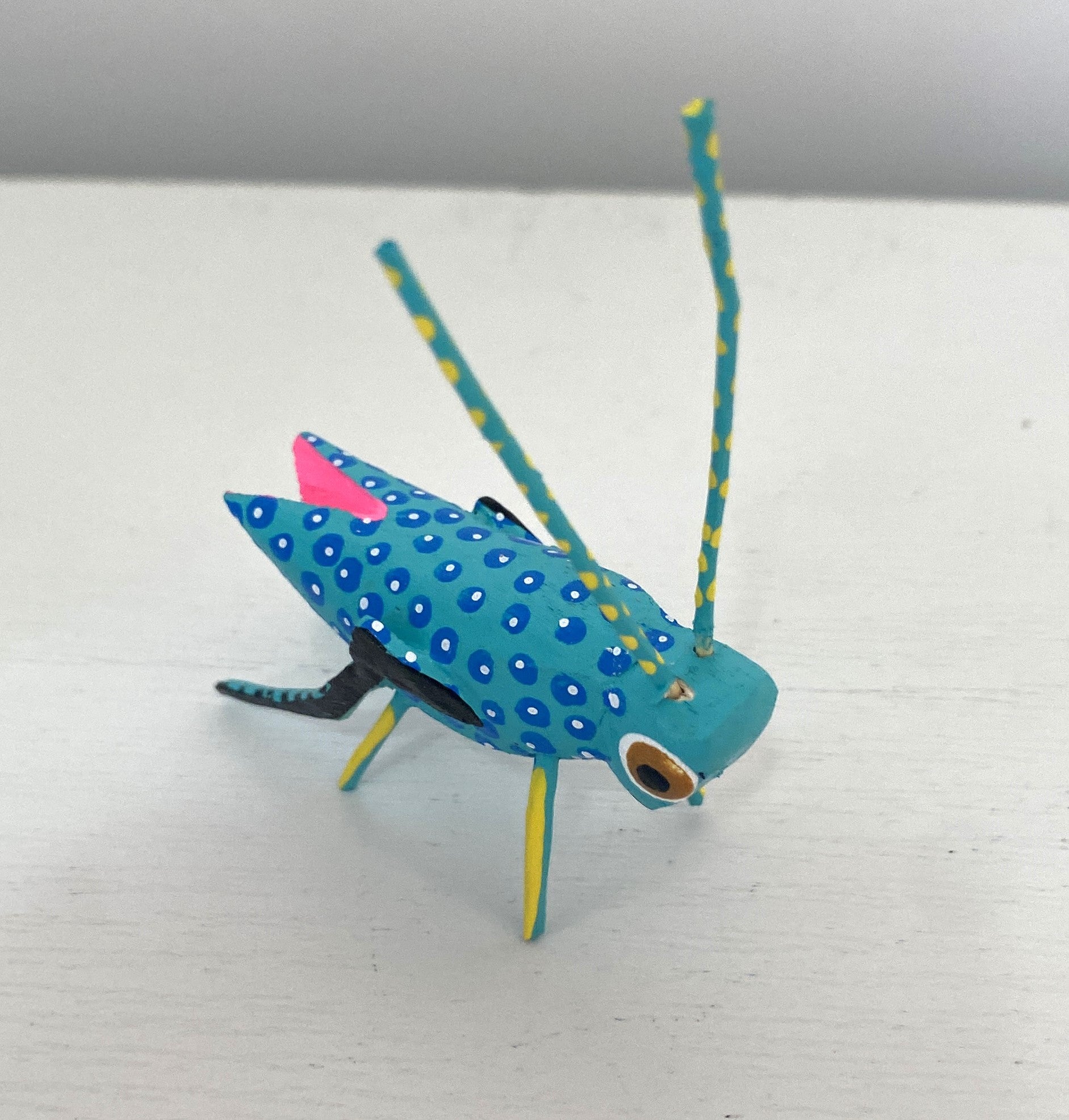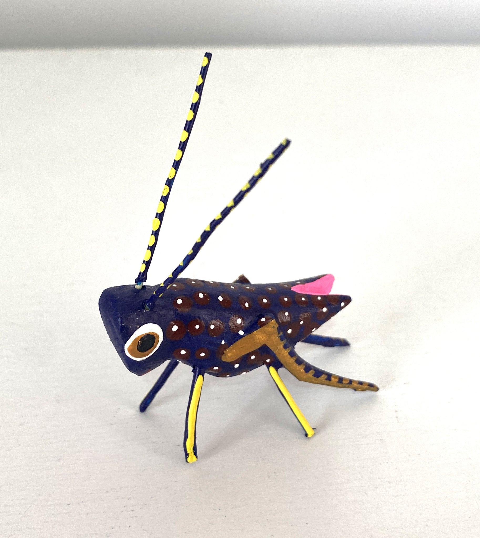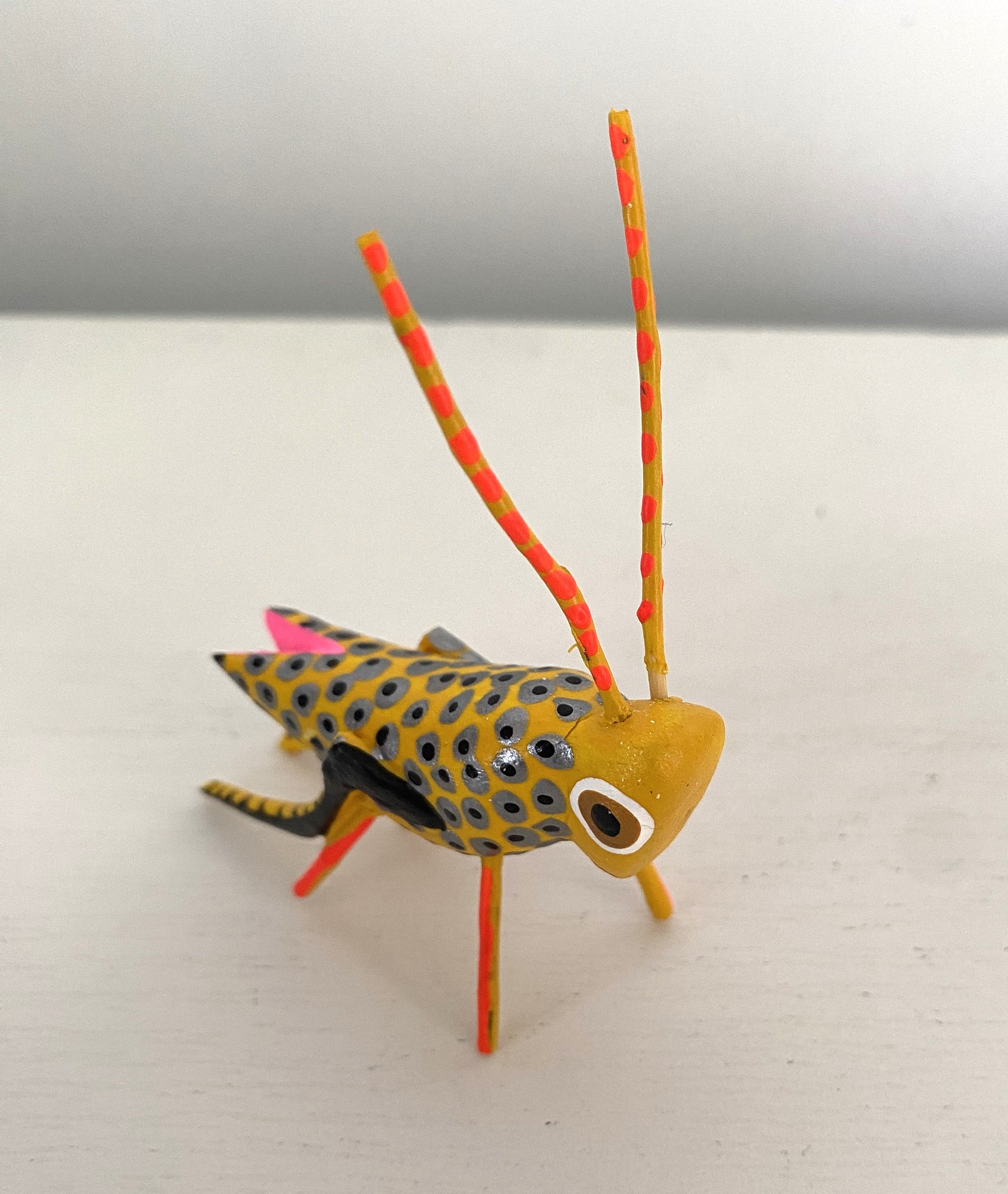 This beautiful "Grasshopper" Alebrije is made of copal wood.