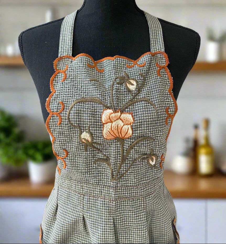 This delicate embroidered Apron is a stylish and decorative piece perfect for adding a touch of cultural flair to your kitchen or dining area.