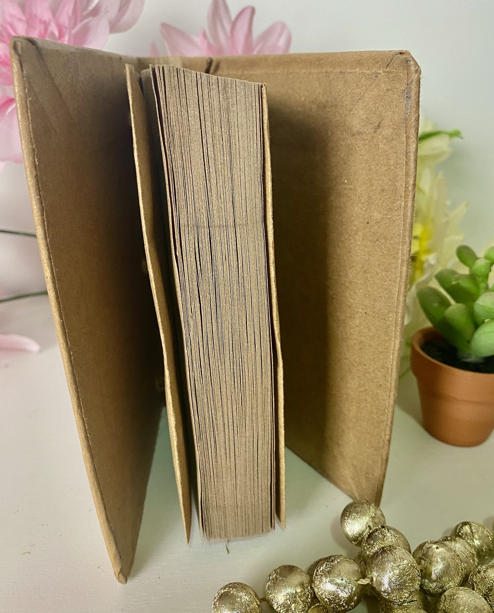 This handmade artisan notebook is the perfect addition to your collection. The cover is made of sturdy cardboard and features a beautiful Corazon design, adding a touch of boho charm to your everyday life.