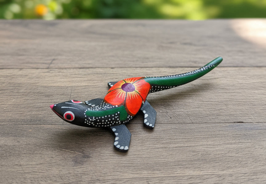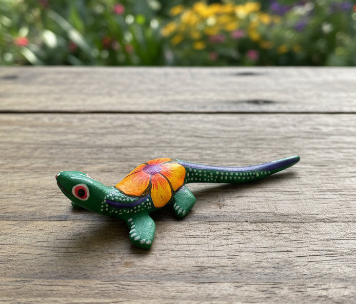 This beautiful Lizard Alebrije is made of copal wood; a stunning piece of Mexican artistry.