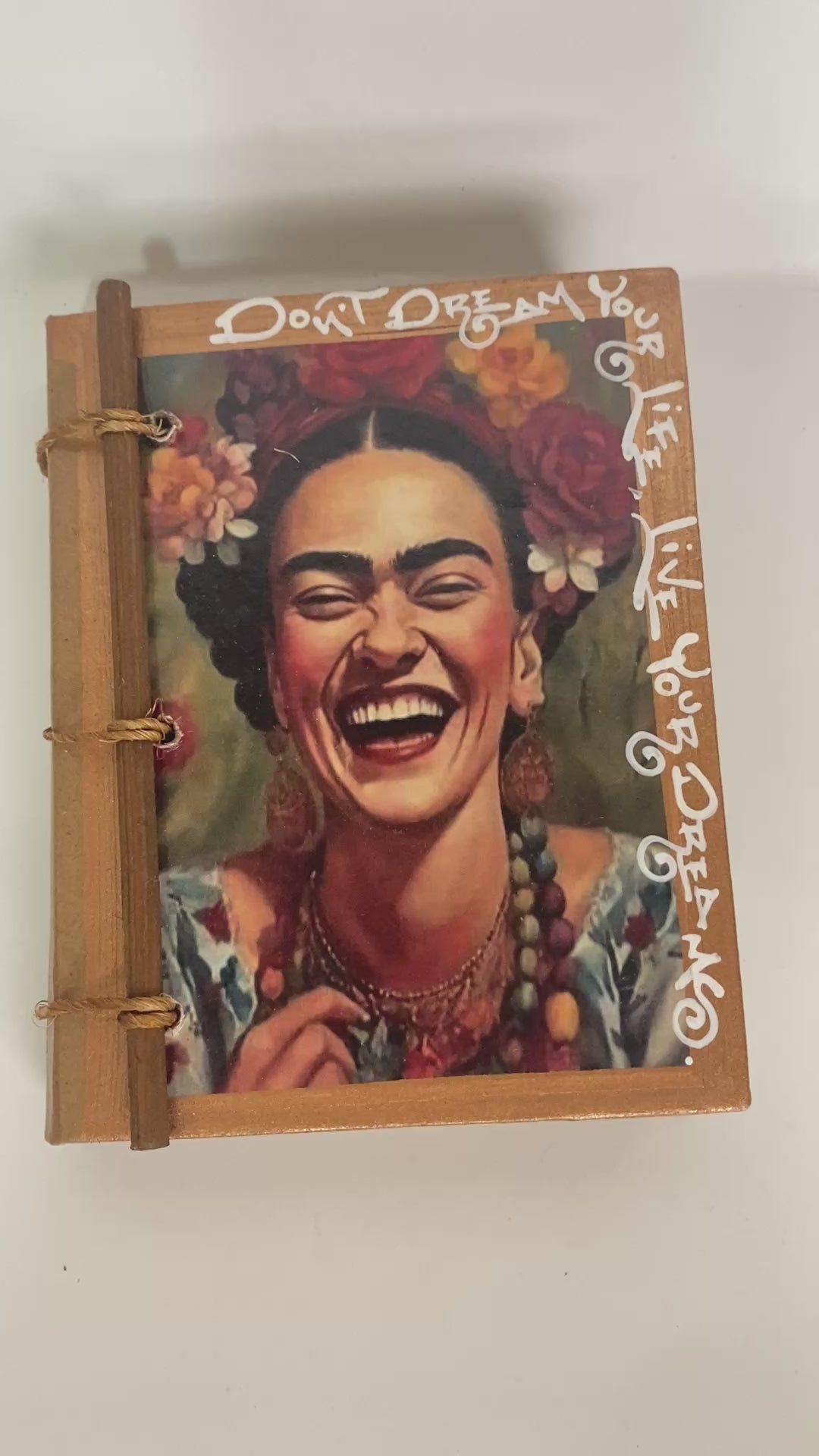 This handmade artisan notebook is the perfect addition to your collection. The cover is made of sturdy cardboard and features a beautiful Frida Kahlo design, adding a touch of boho charm to your everyday life.