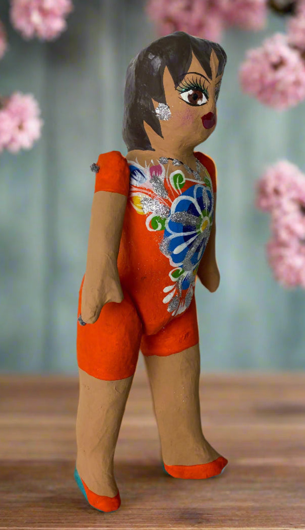 Mexican Cartoneria Lupita Doll - Orange