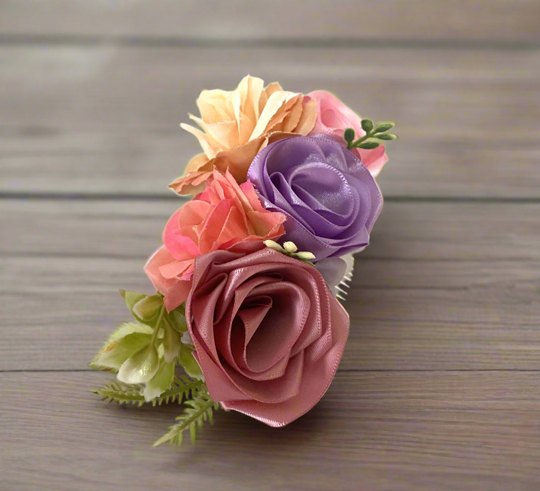 Beautiful Ornamental comb/Hair Accessory with flowers made or ribbon.